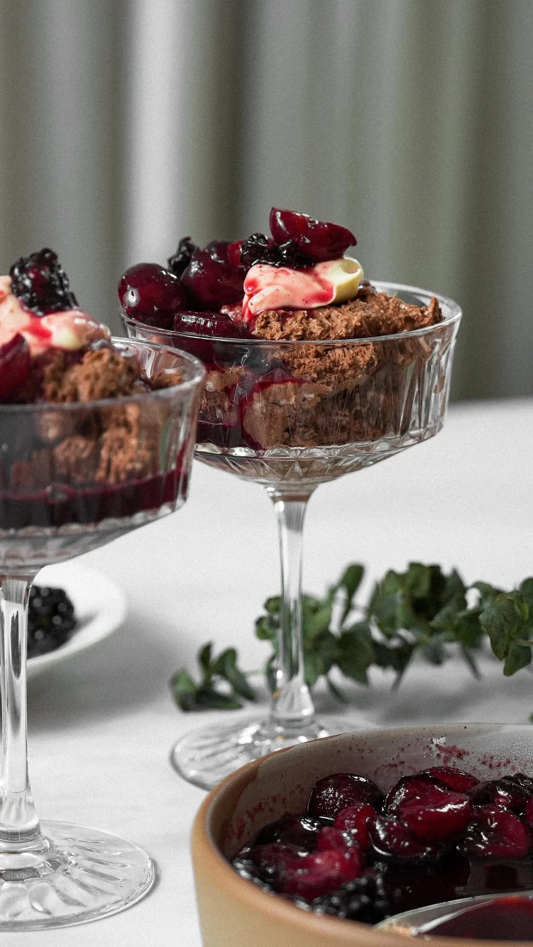To serve Top each chilled mousse with a spoonful of the cooled compote, then finish with a small dollop of whipped cream. Rich, fruity, festive and dangerously easy to devour. Enjoy!